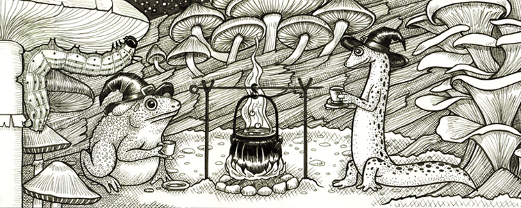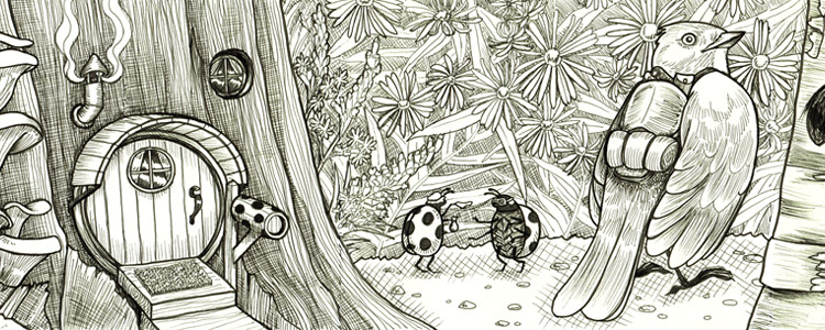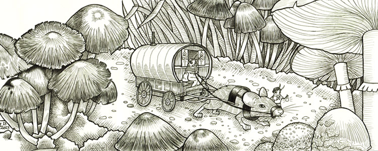 I had a panorama sketchbook, which had accordian folded pages that just kept going, so my drawing kept going! There's three main scenes, but they are all continuous. The paper has a bit of a cream tinge to it.